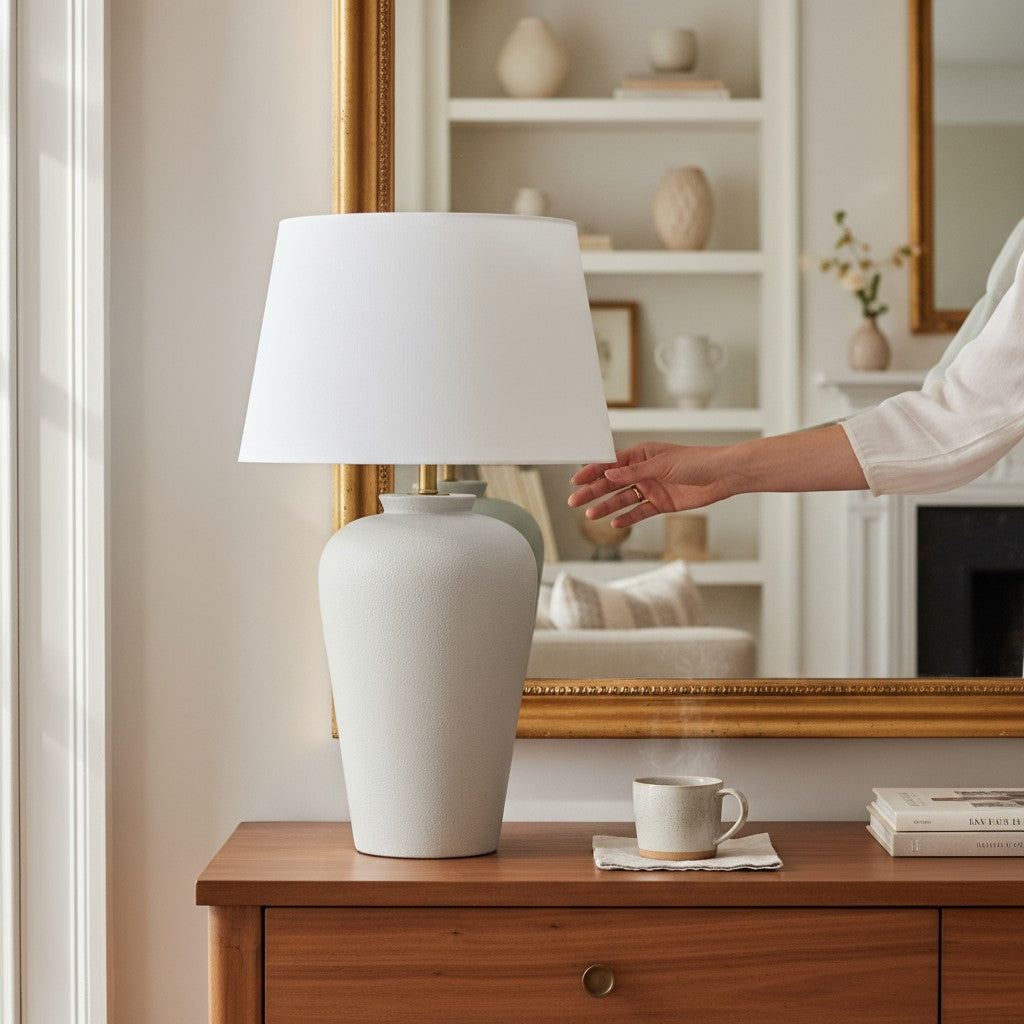 Bring contemporary charm and natural texture to your space with the Cruz Table Lamp. Featuring a solid cement base paired with a crisp white fabric shade, this striking piece offers a perfect balance of strength and softness. Ideal for modern interiors, it adds warmth and sculptural beauty to your bedside, console, or living area. 🕯️🌿