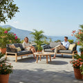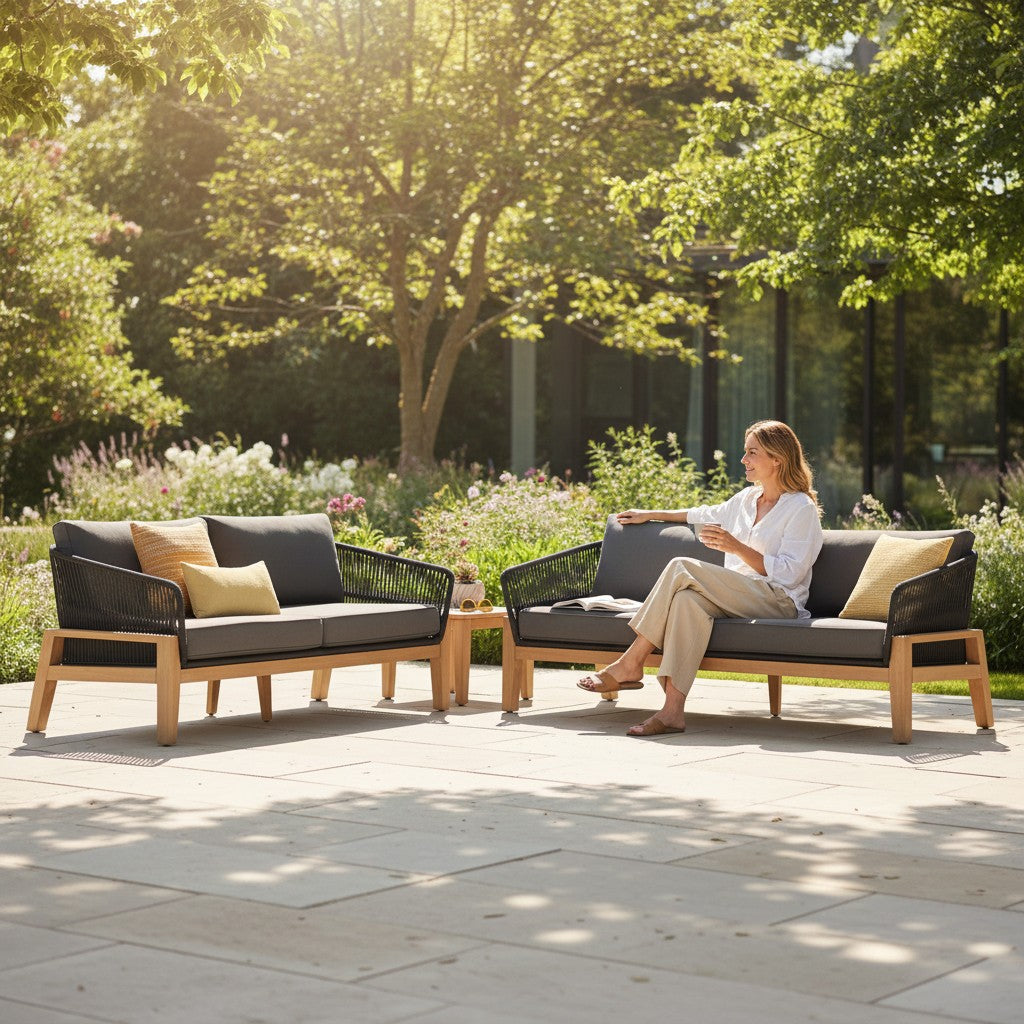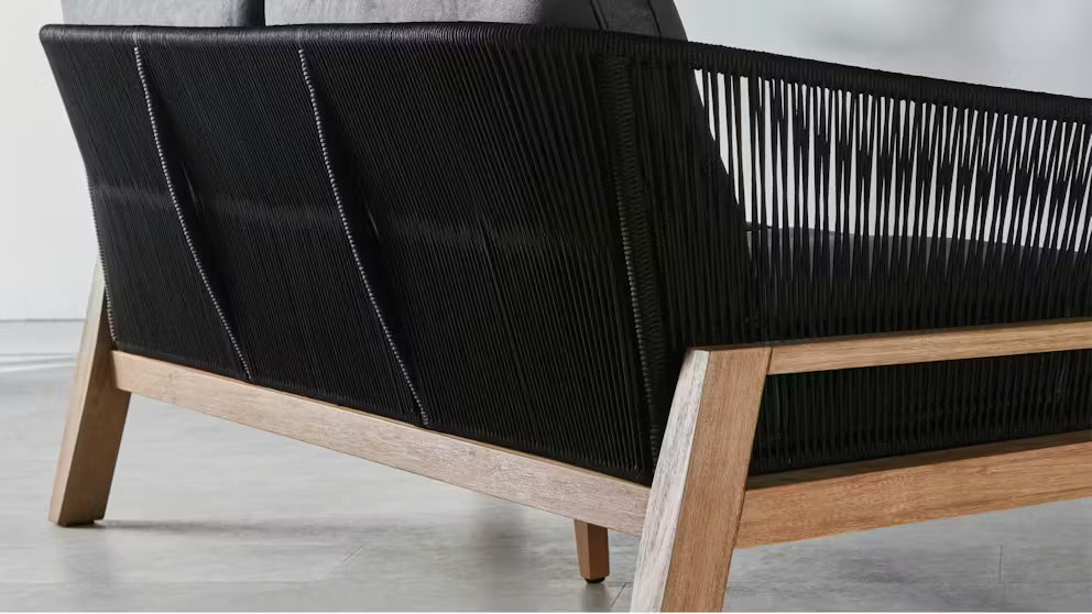 Create an inviting space for cherished conversations and outdoor relaxation with the Monument Outdoor Lounge in Black. Combining natural textures with modern detailing, this premium piece is designed to elevate any alfresco setting.