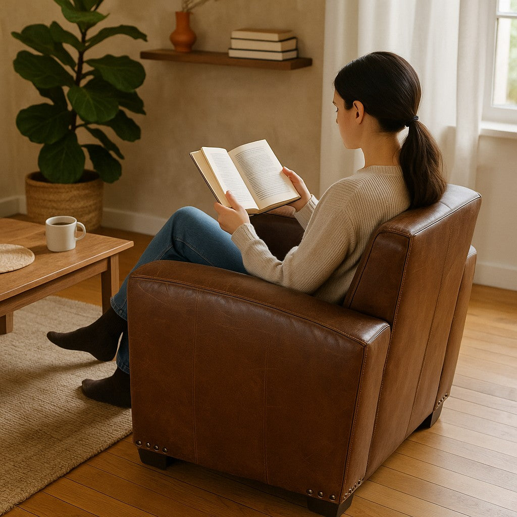 Upholstered in premium South American top grain cow leather that softens beautifully over time, revealing rich depth and character.