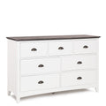 Finish: Durable satin smooth white coating with brushed acacia tops