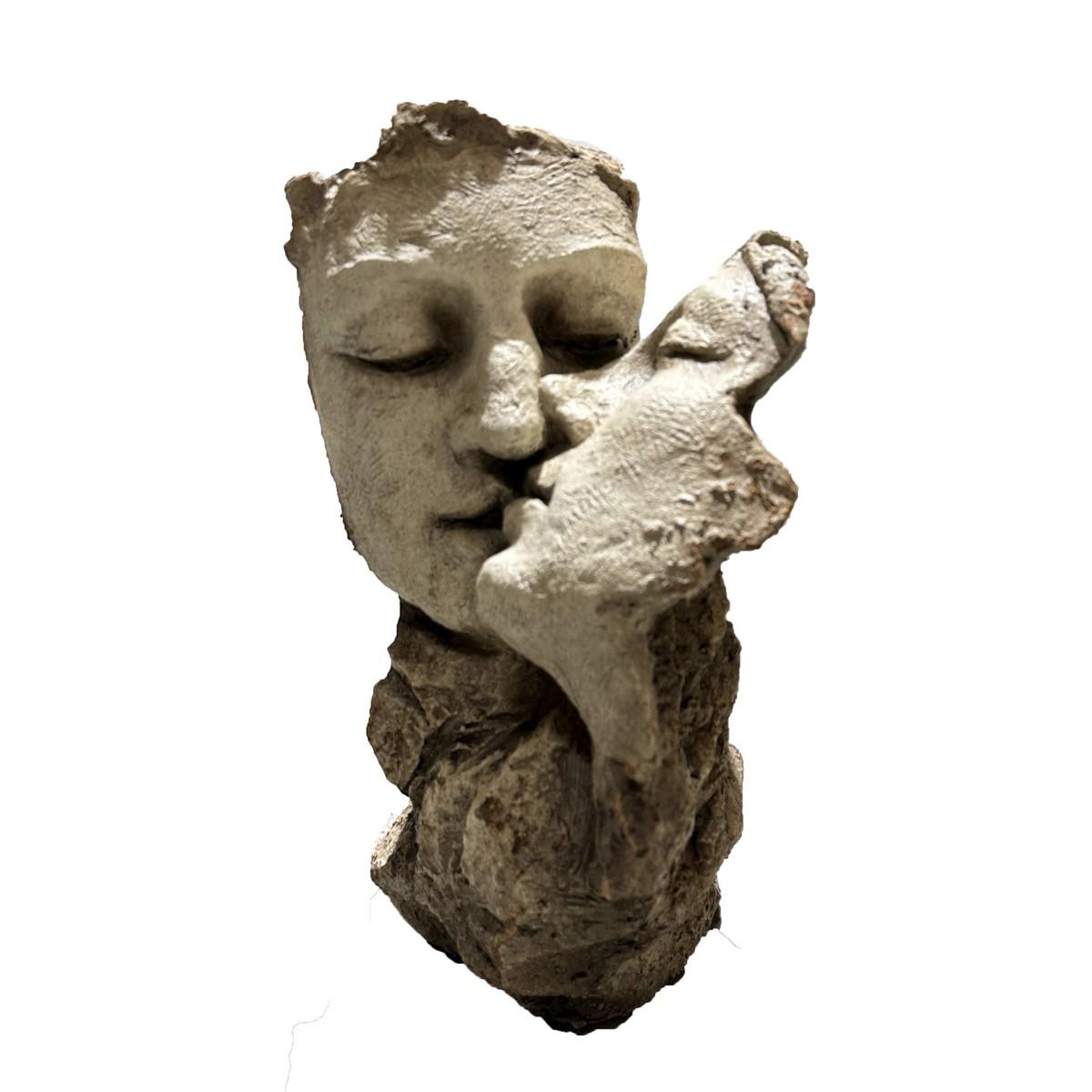 CELEBRATE LOVE AND ARTISTRY WITH OUR VINTAGE KISSING HEADS SCULPTURE. CRAFTED WITH EXQUISITE ATTENTION TO DETAIL, THIS CHARMING SCULPTURE CAPTURES THE ESSENCE OF A ROMANTIC BYGONE ERA. THE WEATHERED PATINA ADDS CHARACTER AND AUTHENTICITY, MAKING IT A PERFECT ADDITION TO VINTAGE AND ROMANTIC-THEMED DECOR. WHETHER DISPLAYED ON A SHELF, MANTLE, OR TABLETOP, THESE ENTWINED HEADS EVOKE A SENSE OF TIMELESS AFFECTION AND ENCHANTMENT.