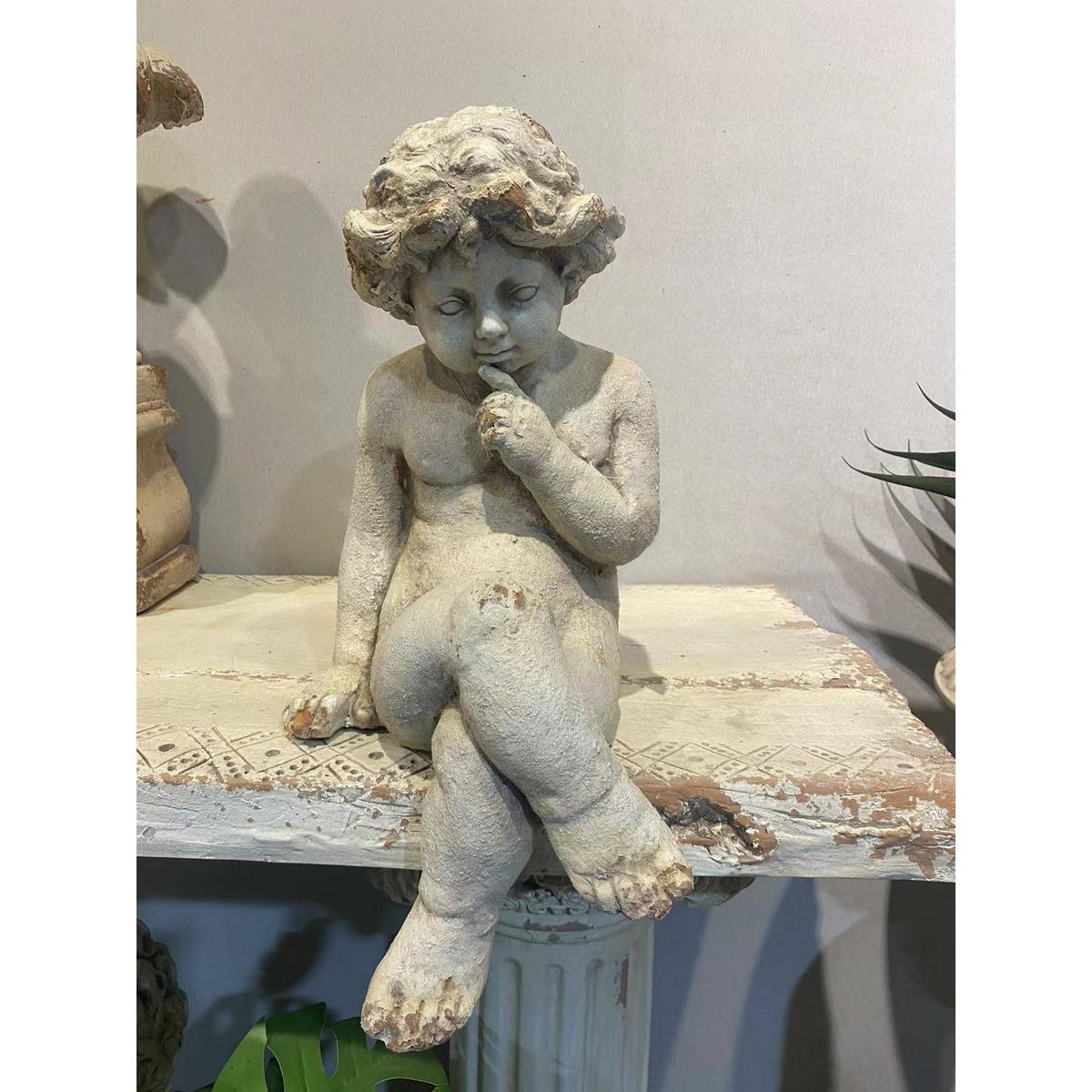 MEET OUR VINTAGE SITTING CUPID – A SYMBOL OF LOVE AND BEAUTY, BEAUTIFULLY CAPTURED IN TIMELESS ARTISTRY. CRAFTED WITH EXQUISITE DETAIL AND ADORNED WITH A WEATHERED FINISH, THIS CUPID SCULPTURE ADDS A TOUCH OF VINTAGE CHARM AND ROMANTIC WHIMSY TO ANY SPACE. LET THE VINTAGE SITTING CUPID INSPIRE MOMENTS OF LOVE AND GRACE IN YOUR HOME TODAY.