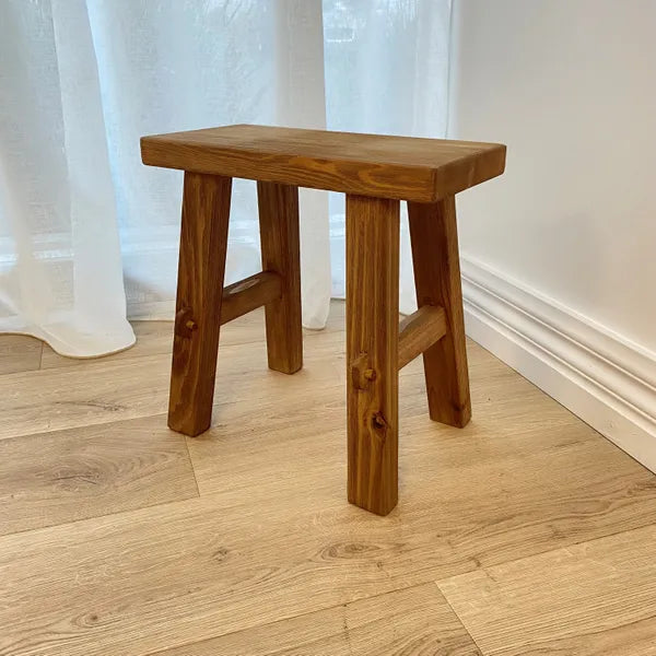The Reclaimed Wood Small Bench is a versatile and stylish addition to any home. Whether placed in a front entryway, living room, hallway, bathroom, or even as a plant stand, this compact bench adds both function and character to your space.
