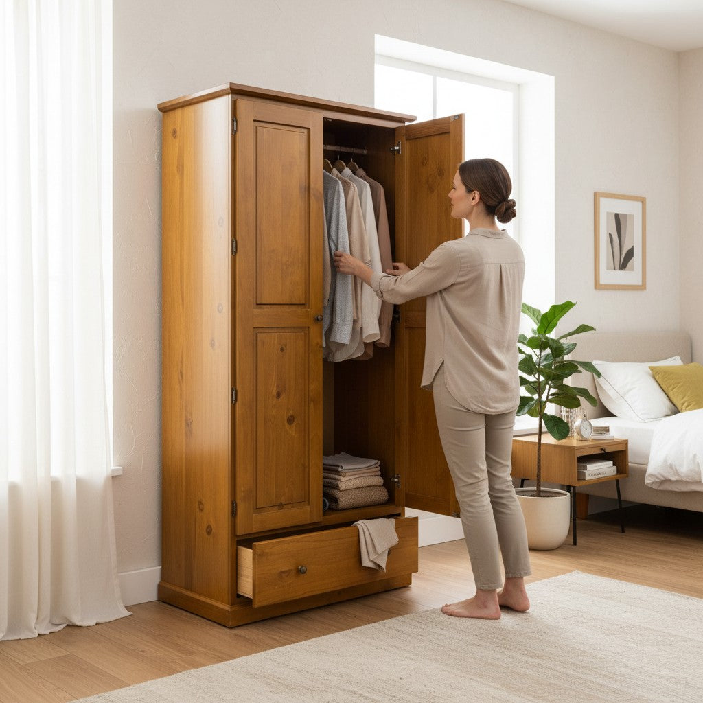 The Robert 1 Drawer Wardrobe is a timeless, functional storage piece crafted from solid pine, offering strength, durability, and a warm natural finish 🌿✨. Designed for everyday living, it blends classic style with practical organisation.