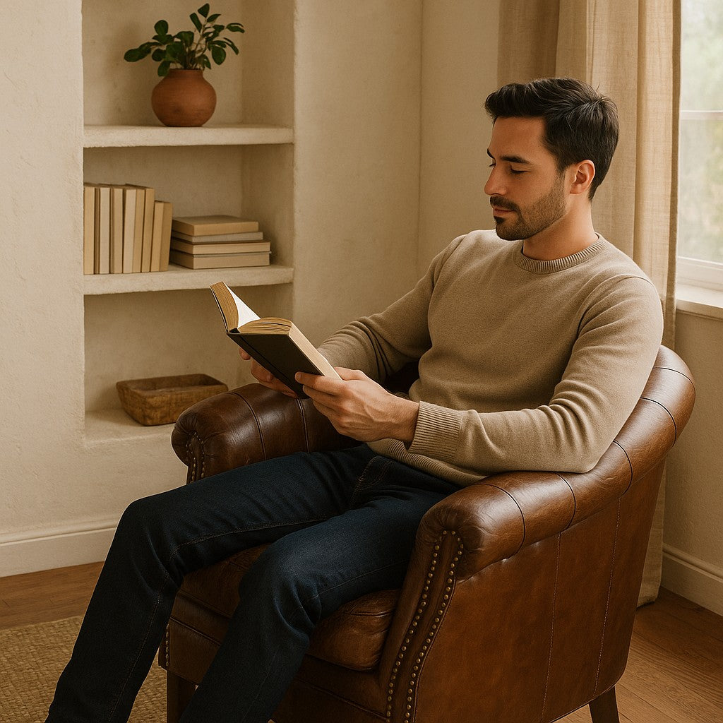 Wrapped in South American top grain cow leather that softens with age, revealing a rich patina and natural texture.