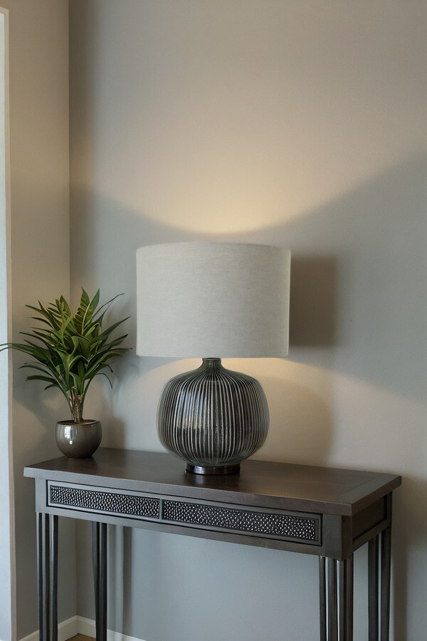 THE BLACK GLAZED CERAMIC LAMP WITH GREY LINEN SHADE EXUDES MODERN ELEGANCE AND SOPHISTICATION. FEATURING A SLEEK, HIGH-GLOSS BLACK CERAMIC BASE PAIRED WITH A SOFT GREY LINEN SHADE, IT OFFERS A PERFECT BALANCE OF STYLE AND FUNCTION. IDEAL FOR LIVING ROOMS, BEDROOMS, OR OFFICE SPACES, THIS LAMP ADDS A REFINED TOUCH TO ANY INTERIOR.