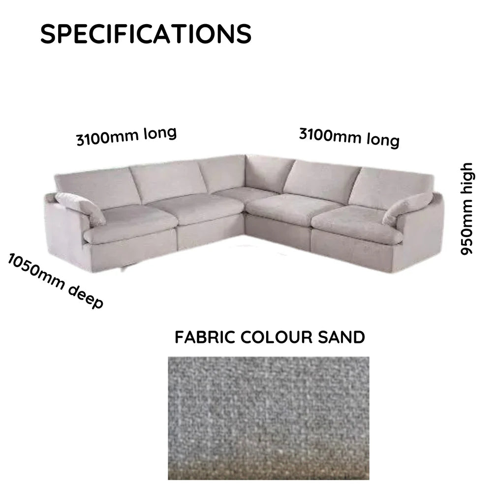 Elevate your living space with the Scarlett 5-Piece Modular Sofa, where modern design meets everyday comfort. Upholstered in a soft Sand-coloured fabric and built with premium materials, Scarlett offers a plush, inviting feel with its feather foam seating and generous proportions β perfect for lounging, entertaining, or simply relaxing in style.