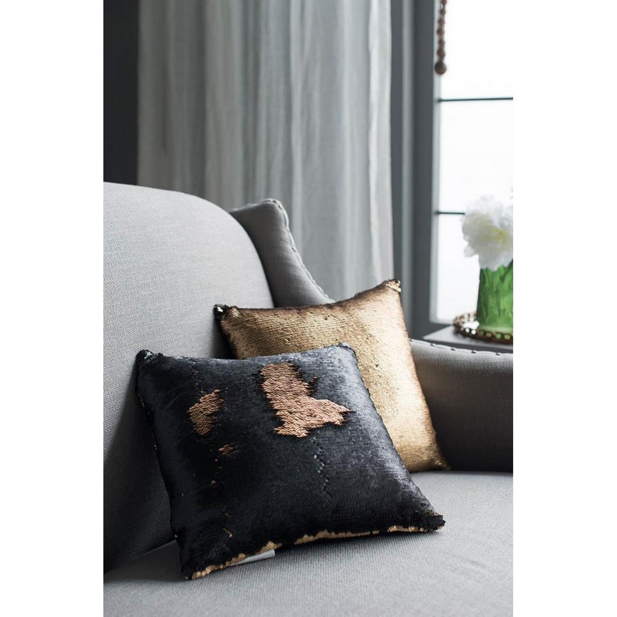 THESE GLAMOROUS THROW PILLOWS. THIS SET OF TWO INCLUDES ONE PILLOW IN BLACK AND