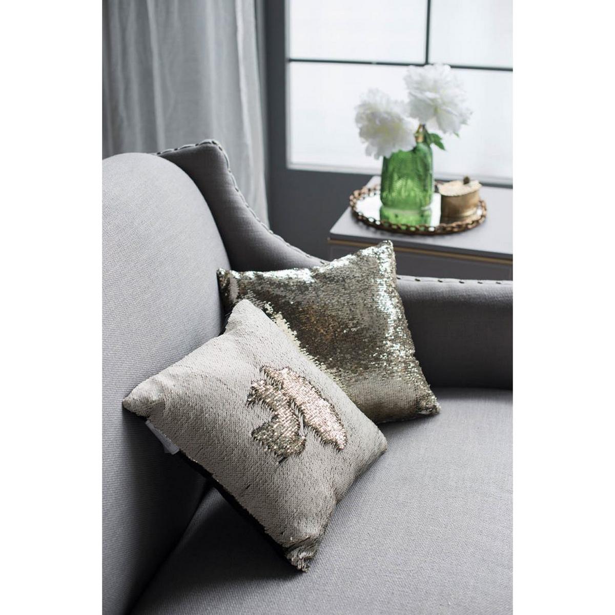 SOPHISTICATED UPGRADE WITH THIS DAZZLING PAIR OF PILLOWS. ONE PILLOW FEATURES