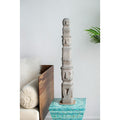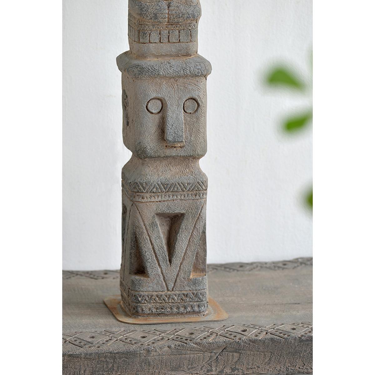GARDEN OR LARGE ENTRYWAY. THIS TOTEMIC PIECE HAS AN AGED LOOKING GREY FINISH
