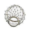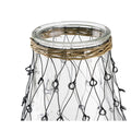 WRAPPED COMPLETELY IN BLACK METAL WIRE. WILLOW ACCENTS ADD TO THIS PIECE’S