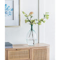 THE AMADOUR BUBBLE GLASS BOTTLE FEATURES SOFTLY TEAL-COLORED GLASS IN A UNIQUELY ROUNDED SHAPE. THIS BOTTLE IS BEAUTIFUL ALL ON ITS OWN WITH TINY AIR BUBBLES THROUGHOUT, REMINISCENT OF DEW DROPLETS. FULL OF PERSONALITY AND READY FOR YOU TO MAKE IT YOUR OWN, THIS VASE IS GREAT ALONE OR IN MULTIPLES.