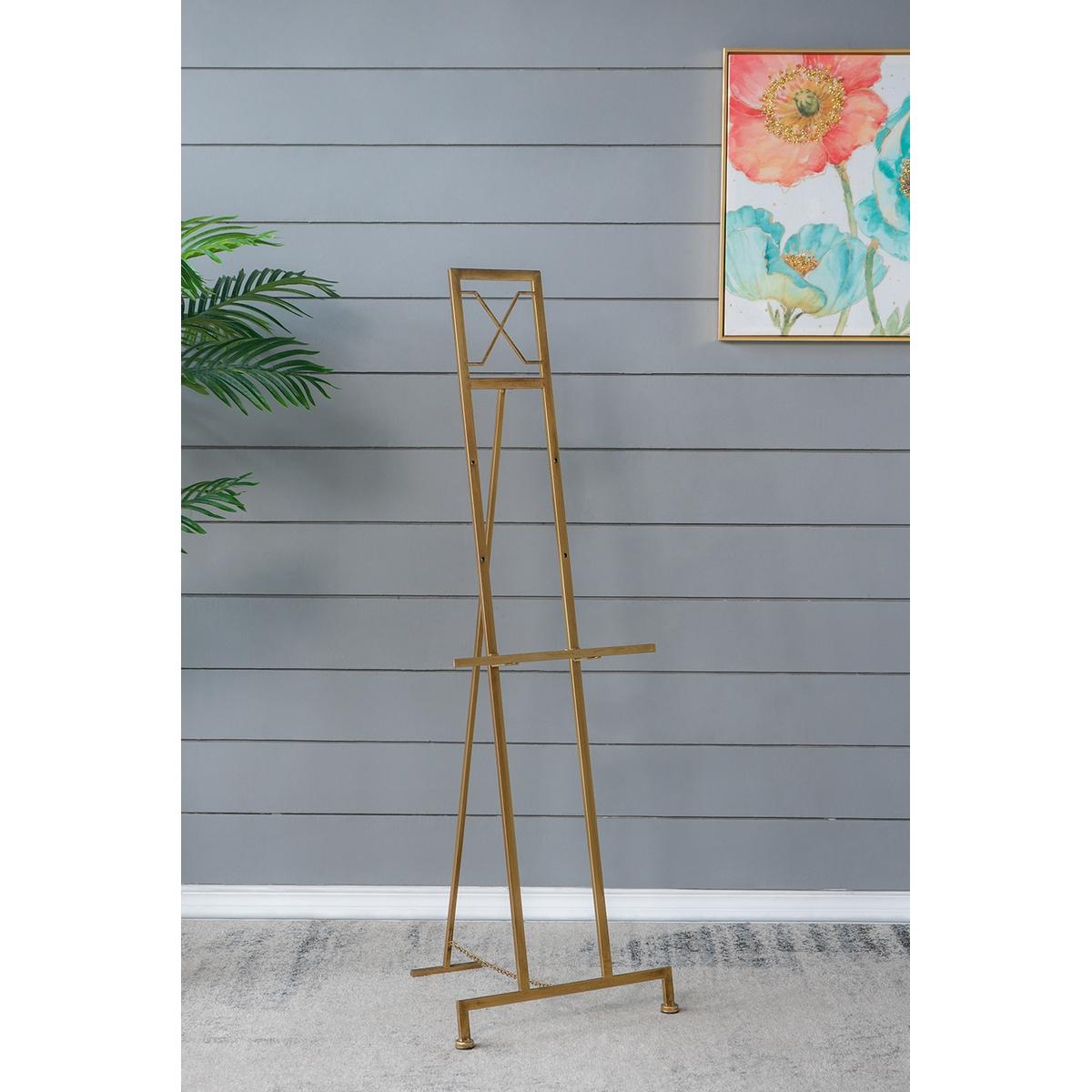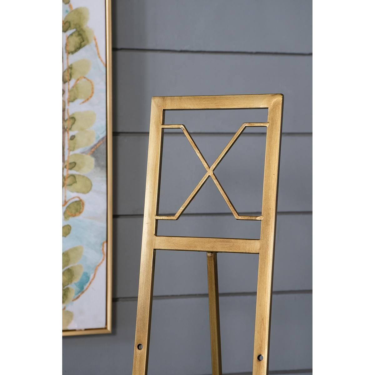 Display your favorite artwork on the Ameca floor easel. Attractive modern design in popular gold finish stands 1450mm tall and can hold many sizes of artwork.