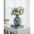 CRAFTED FROM 100% HIGH-QUALITY CERAMIC AND SPORTING AN ORGANIC REACTIVE GLAZE FINISH, THIS VASE BOASTS AN INTRIGUING BLEND OF BLUE AND WHITE COLOURS ACROSS THE CURVED SURFACE. PERFECT FOR USE AS A STANDALONE DECORATIVE ACCENT OR AS A VESSEL FOR A CUSTOM FLORAL ARRANGEMENT. IT IS AN IDEAL SIZE TO BE PLACED ON YOUR SIDEBOARD, MANTELPIECE, TABLETOP, COUNTER-TOP OR DRESSER.