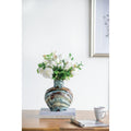 CRAFTED FROM 100% HIGH-QUALITY CERAMIC AND SPORTING AN ORGANIC REACTIVE GLAZE FINISH, THIS VASE BOASTS AN INTRIGUING BLEND OF BLUE AND WHITE COLOURS ACROSS THE CURVED SURFACE. PERFECT FOR USE AS A STANDALONE DECORATIVE ACCENT OR AS A VESSEL FOR A CUSTOM FLORAL ARRANGEMENT. IT IS AN IDEAL SIZE TO BE PLACED ON YOUR SIDEBOARD, MANTELPIECE, TABLETOP, COUNTER-TOP OR DRESSER.