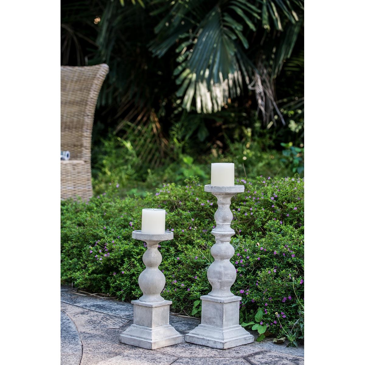 CRAFTED OF GREY CEMENT, THIS TALL PILLAR CANDLEHOLDER HAS A TRADITIONAL LOOK. THE DECORATIVE HOLDER HAS RIBBED DETAIL THAT ENHANCES THE PEDESTAL BASE. STURDY AND ATTRACTIVE, IT WILL ADD BOTH FUNCTIONALITY AND VISUAL APPEAL TO YOUR HOME.