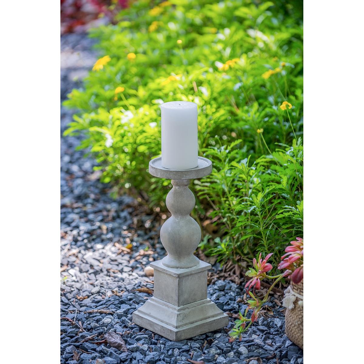 CRAFTED OF GREY CEMENT, THIS TALL PILLAR CANDLEHOLDER HAS A TRADITIONAL LOOK. THE DECORATIVE HOLDER HAS RIBBED DETAIL THAT ENHANCES THE PEDESTAL BASE. STURDY AND ATTRACTIVE, IT WILL ADD BOTH FUNCTIONALITY AND VISUAL APPEAL TO YOUR HOME.