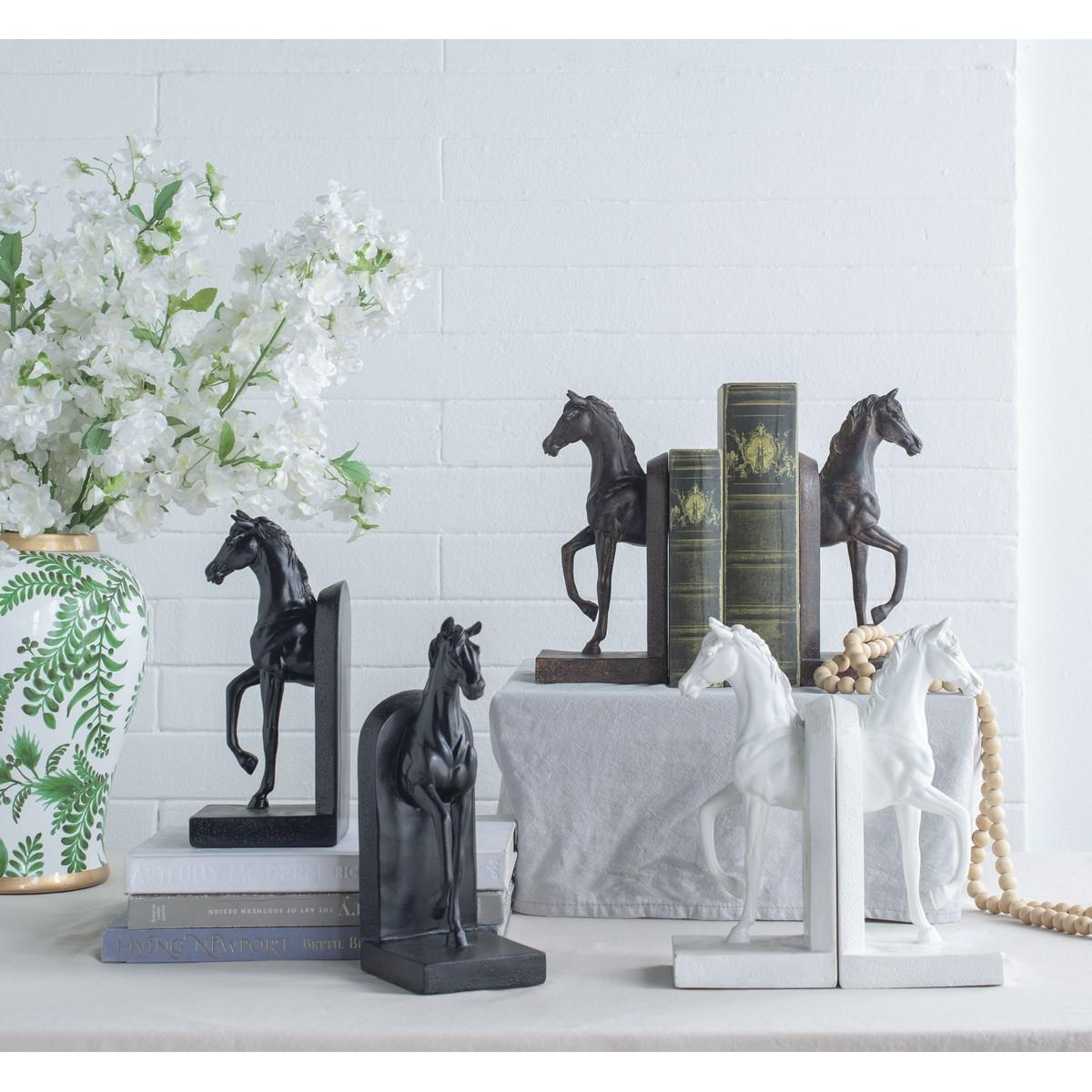 Showcase your love for equine elegance with the Horse Bookends (Set of 2). Crafted from durable magnesium with a sleek black finish, these bookends combine strength and sophistication. Their finely detailed horse sculptures add a touch of majesty and timeless charm, making them perfect for organising and displaying your favourite books on a bookshelf, console, or desk. A graceful and enduring addition to any home décor.