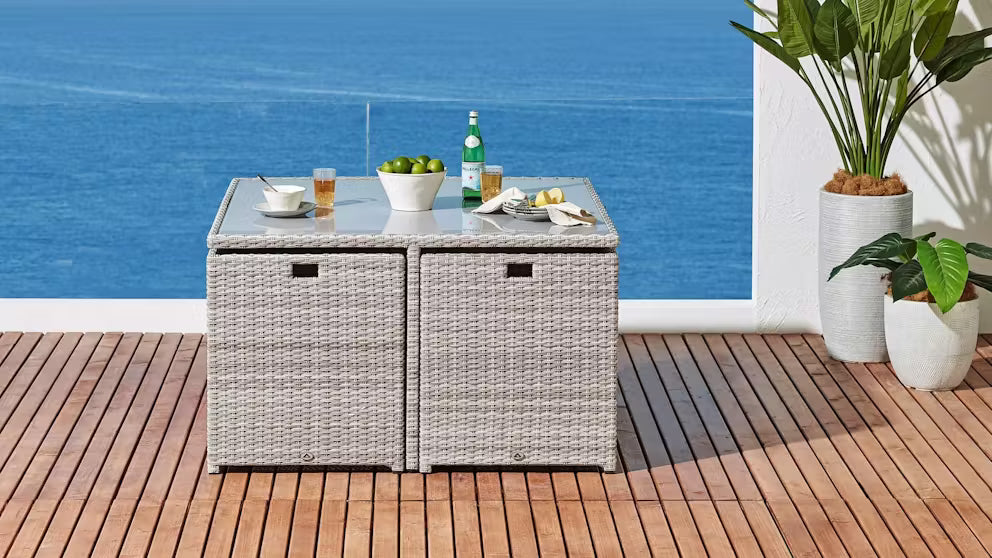 Perfect for relaxed afternoon drinks or summer brunches, the Sorrento 9-Piece Outdoor Dining Setting combines modern design with lasting durability. Built with aluminium frames and resin wicker, this set is designed to handle New Zealand’s outdoor conditions in style.