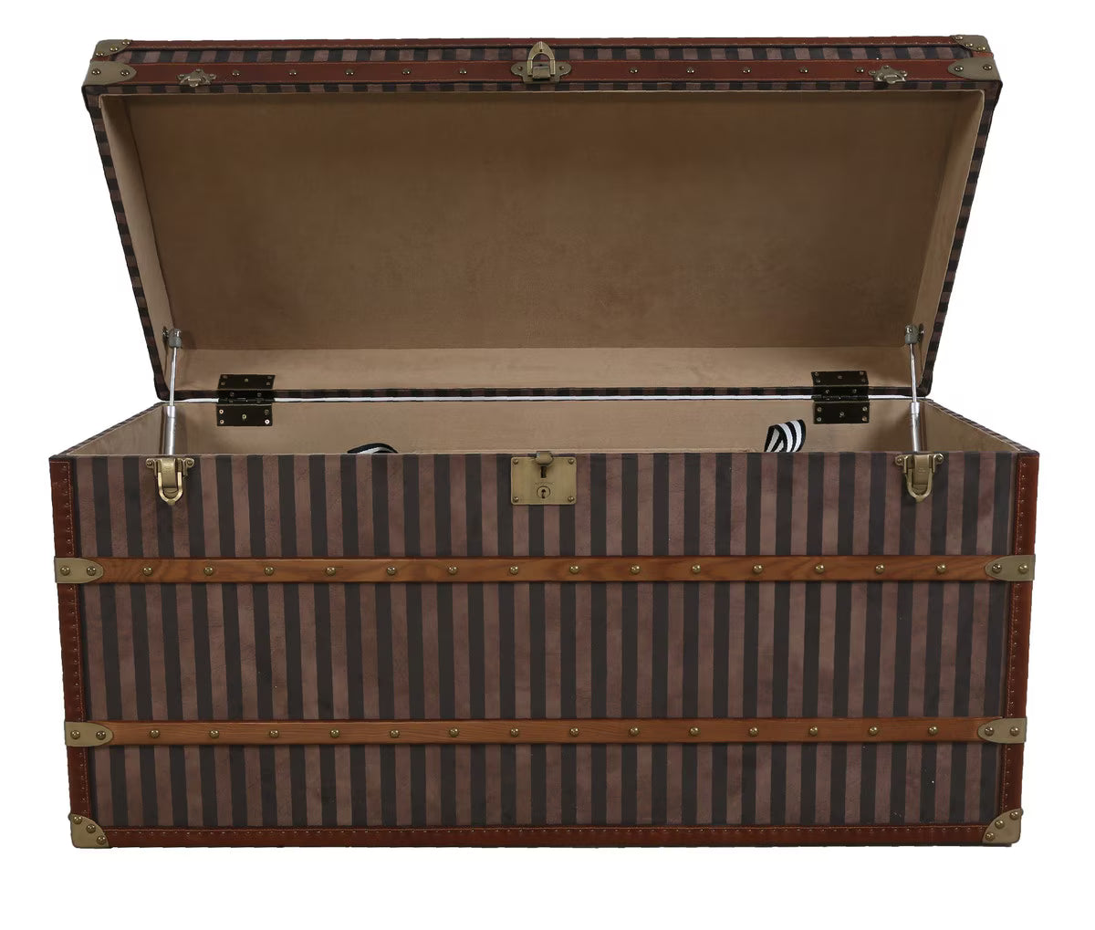Make a bold statement with the Wooden Trunk Coffee Table, a piece thatโs as practical as it is stylish. Crafted from rich oak and accented with leather straps and antique brass details, it brings a touch of vintage, travel-inspired character to your home. More than just a coffee table, it also doubles as handy storageโperfect for keeping blankets, books, or everyday essentials neatly tucked away.