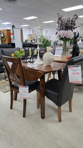 The Vancouver Dining Table includes two practical drop-leaf sides, making it a brilliant space-saving solution for apartments, studios, and smaller dining areas. When fully opened, it comfortably seats up to four with the matching Cross-Back Hammis Chairs, giving you a functional and stylish dining setup.
