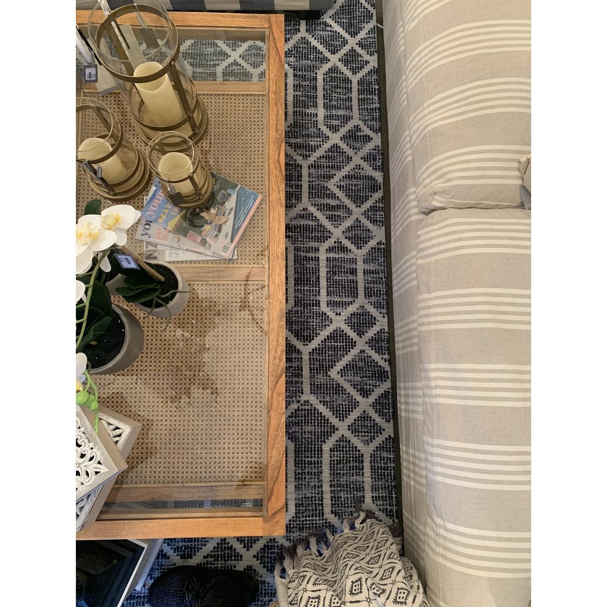 attractive contrast is needed. A rug designed in blue and white, we can notice
