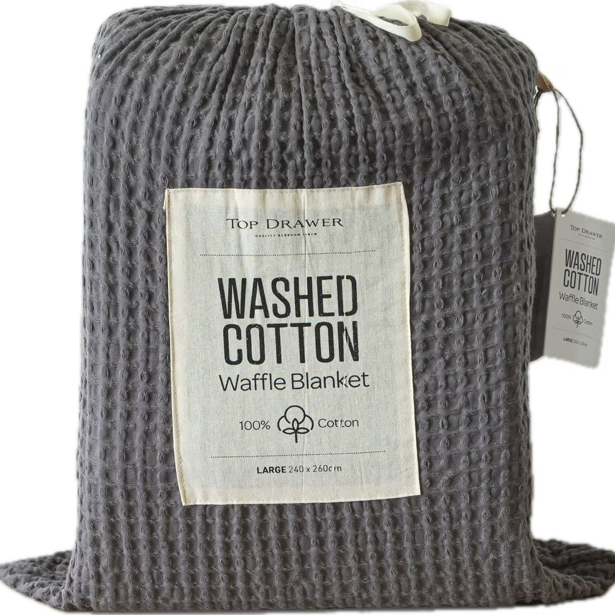 Wrap yourself in comfort with the 100% Cotton Waffle Blanket, beautifully finished with matching percale edging. Each blanket is twice washed for extra softness and a relaxed, lived-in feel.