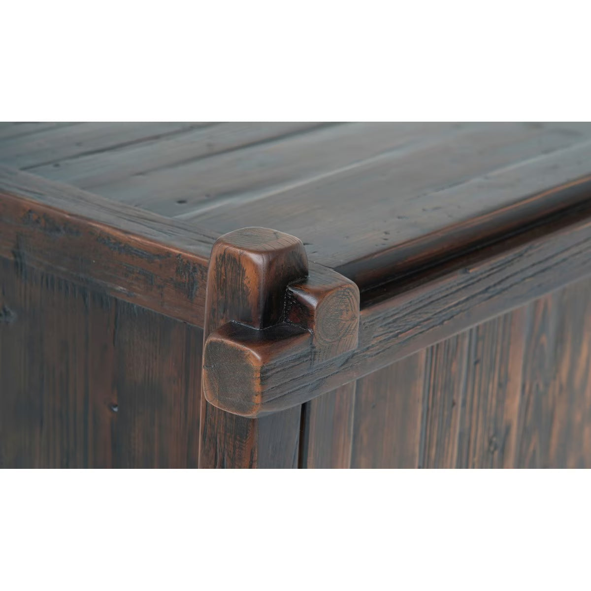 - Rich antique walnut finish highlighting natural timber grain