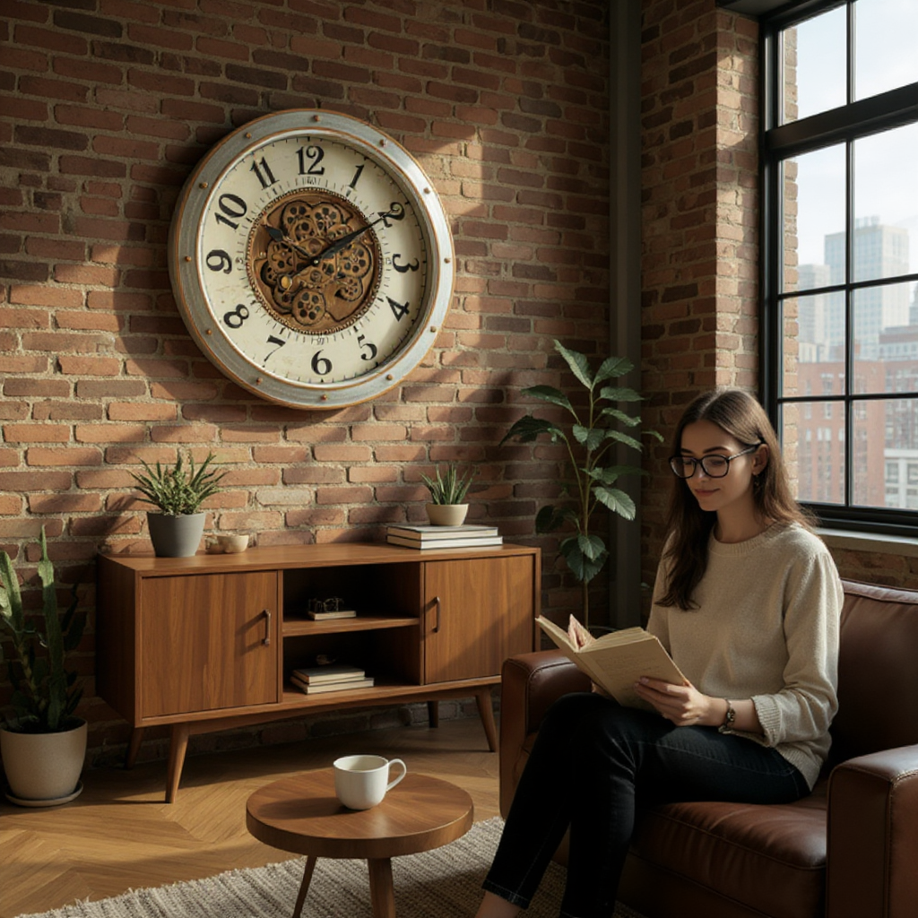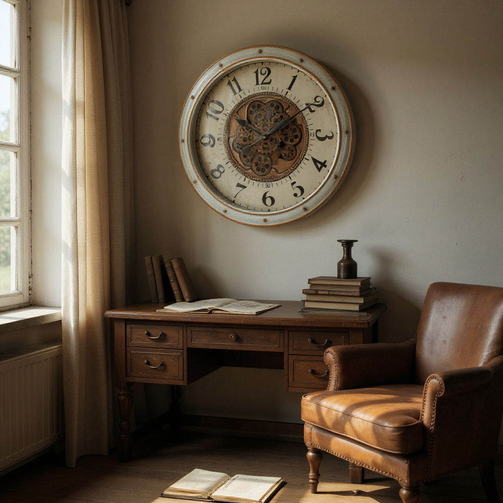 Add a bold statement to your space with the White Gears Clock. Measuring 66 cm, this large industrial-style clock features crisp white and steampunk-inspired golden gears and cogs, perfectly complemented by striking black numerals for easy reading. Its eye-catching design combines vintage charm with modern flair, making it a cheerful and unique centerpiece for any room.